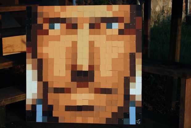 Encontré una foto de Hugh Laurie de la serie House online, traído en Photoshop y había reducida a 20 x 20 píxeles. Jugar con el Modo de interpolación de imagen (en preferencias/General) para ver cuál funciona mejor en la preservación del información correcto cuando se reducen. Luego amplió para llenar un pedazo de papel de 8.5 "x 11" y hacer una red entre cada uno de los píxeles.