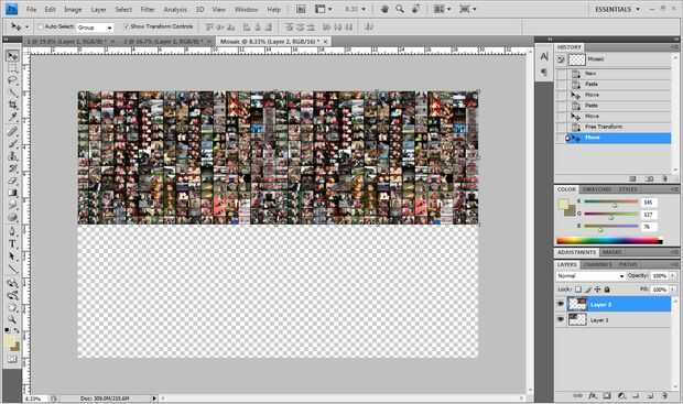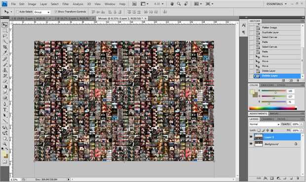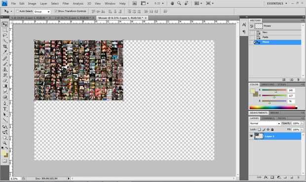 Ir al archivo llamado "Mosaico" y pegar la imagen (Ctrl + V ). Alinear la imagen con la parte superior izquierda. (Ver imágenes arriba por ejemplo.)