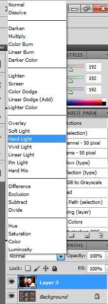 En el mosaico del archivo seleccione la capa que había pegada sólo en y cambia el modo de fusión a la dura luz (vea imágenes de la segunda y terceros).