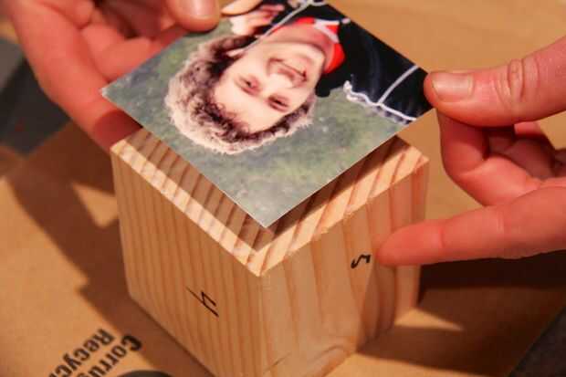 Para las fotos individuales (fotos pequeñas) coloca la foto cara arriba directamente sobre el bloque y coloca a la parte de la foto que queríamos que aparece.