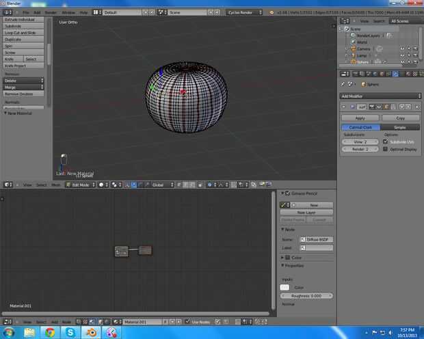 a continuación la pantalla dividida y abra un editor de nodo en la parte inferior de la mitad de la pantalla. Agregar nodos para hacer algo similar a lo que tengo en la foto. no necesita mirar perfecto aún. Después de agregar el piso y las paredes pueden acabar la textura y el color.