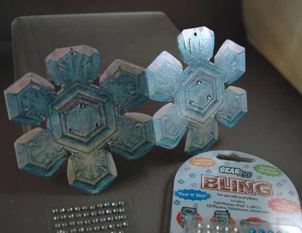 Se me permite la pintura se seque. Entonces agregué Strass adhesivo al centro. Las etiquetas tiene un diamante de imitación; las tarjetas consiguieron tres.