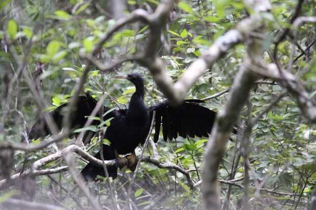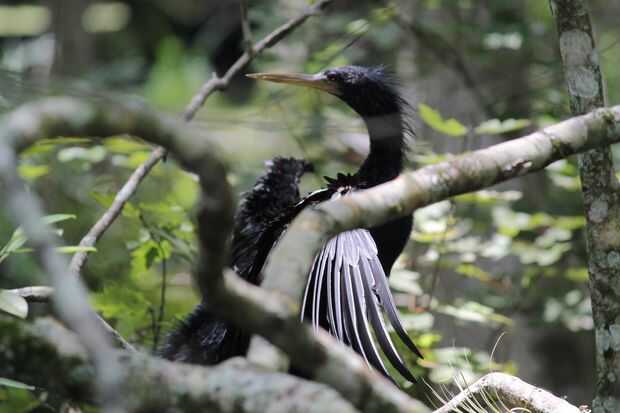 La naturaleza provee algunos grandes marcos naturales a animales y otras áreas de interés. En el caso de la anhinga fotografiado aquí, la curva de ramas alrededor de él es similar a las curvas de su cuello y sirven para ayudar a enmarcar el descanso Ave. También ayuda a que la anhinga es un ave realmente oscuro posado en ramas grises.