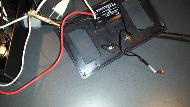 Agarrar una hilos de color de los bulbos. No importa cual cable. Lo que hice fue soldar ambos junto con otro cable que se conecte al cable de fuente blanca. Lo hice porque los cables eran tan poco que sentí vienen sin hecho dentro de una tuerca para alambre. Espessially cuando la sería al lado de un cable mucho más amplio.
