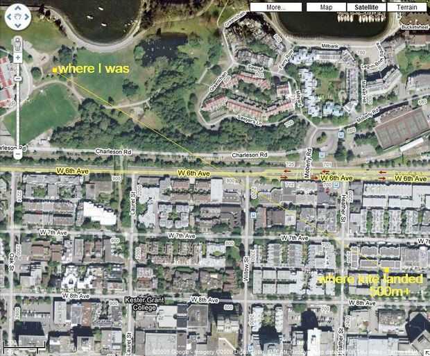 Mi primera línea compró fue un compuesto de nylon comprado en un almacén del dólar, esto rompió en la tercera salida. La buena noticia es que el aparejo de la cámara no estaba Unido todavía. La mala noticia es que quebró mientras tuve + 60 m (200' +) de la línea de salida. También fue en un parque del centro de la ciudad. Es un sentimiento viendo su nuevo juguete favorito vela lejos. la cometa voló como un avión de papel, captura de pícaro viento y poco a poco distanciando más lejos y más lejos de mí. Resulta que aterrizó a unos 550 metros (1800'). He logrado encontrar en un callejón con unos vagos colgando alrededor de él empujando con un palo. Tal vez pensaron que era un regalo del cielo, o tal vez pensaron que era una alucinación normal de toda la pintura que se soplar. De cualquier manera me afirmó mi cometa e hice mi manera de nuevo. La lección aquí es a hacer su tarea antes de tener que hacer frente a las personas sin hogar.