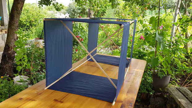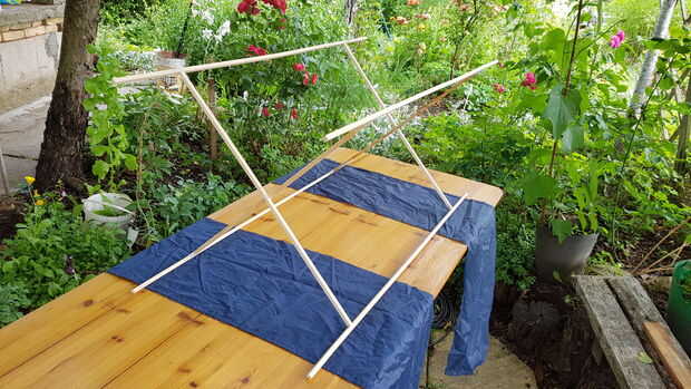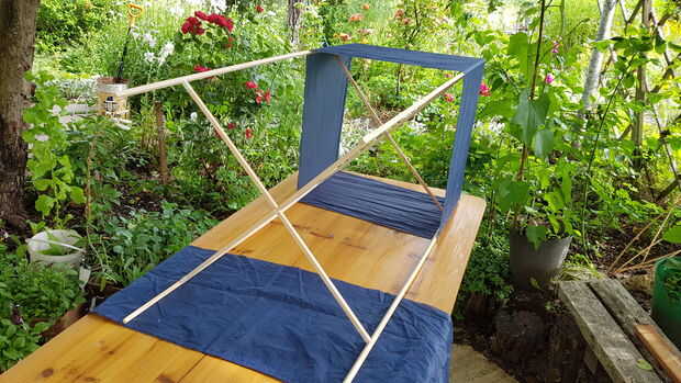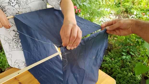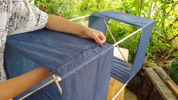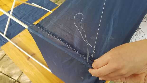 Con la misma puntada ahora de hilo tiras de la tela alrededor de la estructura de madera. Asegúrese de que está un poco apretado y no sueltos en los extremos.