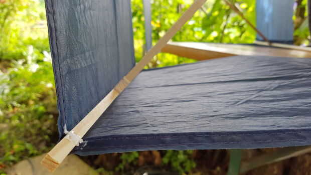 Para añadir a la total fuerza de la cometa coser las esquinas de la tela. Esto ayudará a mejorar el rendimiento anti-torciendo bajo presión del viento y mantener a la tela donde la pones. Poner pegamento en la parte superior cada puntada que hacer para mejorar la vida de largo plazo de su cometa.