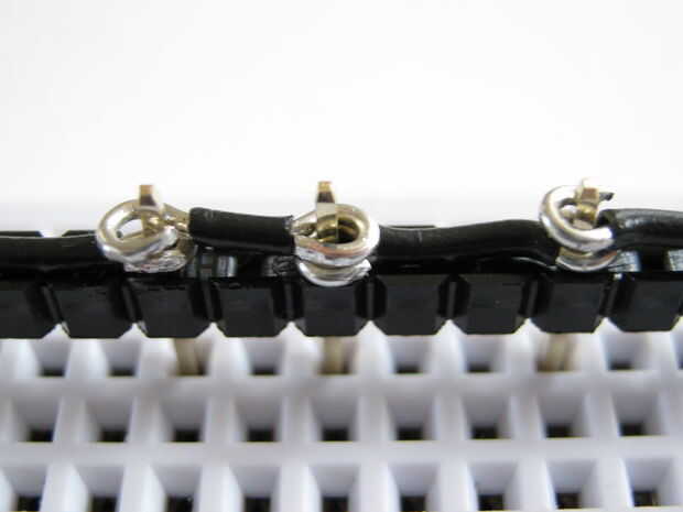 Los pequeños lazos en los cables se hicieron con una herramienta que bobinas de alambre de formas de fabricación de la joyería.