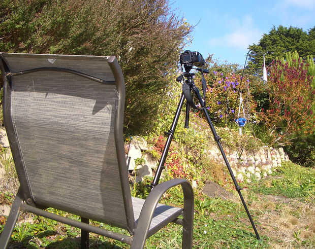 Más cerca lo mejor es una buena regla del pulgar cuando se toman fotos. Pero ¿qué tan cerca puede llegar a alimentar aves? Si las aves están alimentando, tan pronto como entro en la zona, spook y volar lejos. Encontrar si sentarse hasta 10 pies de los alimentadores y permanecer muy quieto, regresan poco a poco y finalmente reanuda el frenesí. Un movimiento rápido asusta otra vez, pero puedo conseguir lejos con movimientos lentos. Rápidamente se acostumbrado al clic de la cámara.