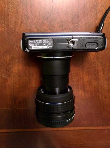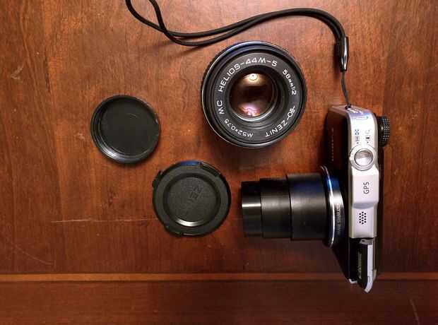 Coloque el extremo de la lente de la cámara encima o justo encima de la parte delantera de la lente de SLR. Se trata de la parte que es sobre todo vidrio de la lente de SLR o lo que normalmente se considera la parte delantera de la lente. Mi equipo acaba de pasar a trabajar bien donde las dos lentes nunca tocan como el barril de la cámara y el anillo negro de HELIOS con escritura mantener la lente dos separados. ¡ RECUERDE! No se rasque los lentes de la cámara o el lente de SLR!