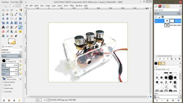 - Pasar sobre el área a fijarse unas cuantas veces con el cepillo. Las partes ocultas de la imagen aparece lentamente.