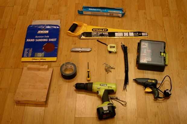 Las herramientas utilizadas son todas bastante básico y muy común. Si no dispone de los mismo, fácilmente pueden ser prestados o comprados de segunda mano en sitios como ebay, gumtree o craigslist.