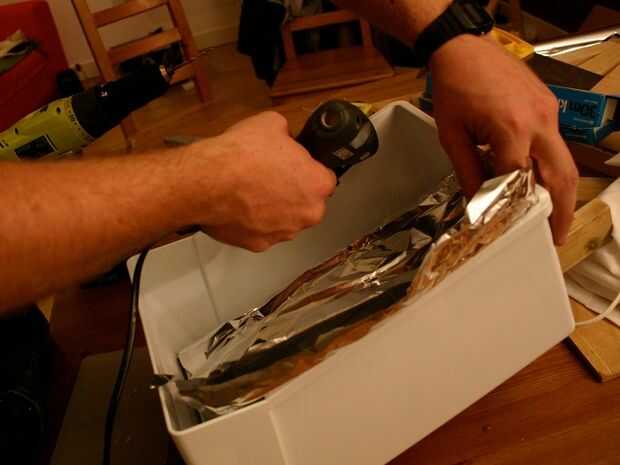Cortar la lámina a la forma y luego use la pistola de pegamento caliente para fijar en su lugar.