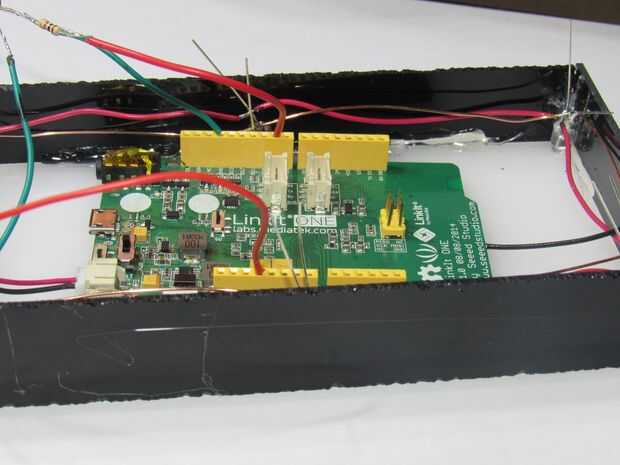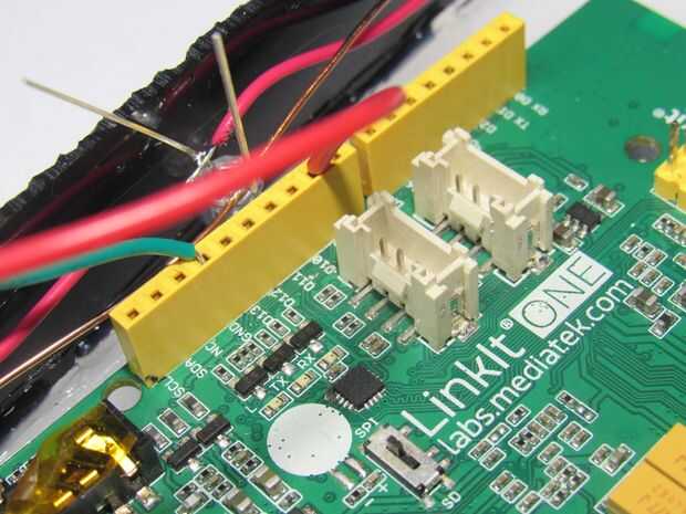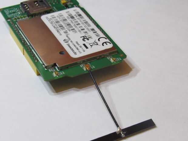 También, usted necesitará fijar la antena WiFi. Por los bancos sobre el tablero de Linkit uno y enchufar el conector uFL pequeño al conector que dice "Wi-Fi / BT hormiga".