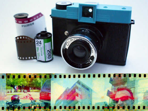 Usé la cámara de medio formato Diana F , que tiene un área de exposición de 52 m m2 y luego hizo un pequeño espaciador de una tapa de plástico de la pluma para permitir un rollo estándar de película de 35 mm para ser utilizado. La mejor parte de este proyecto es que hay no hay modificaciones a la cámara, lo que le permite cambiar rápidamente el tipo de película utilizada sin comprometer su cámara!