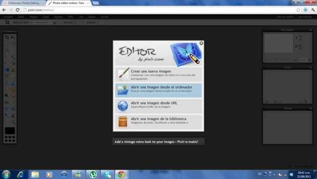 1. Pixlr fue fijado en español pero se puede cambiar fácilmente a otro lenguaje.