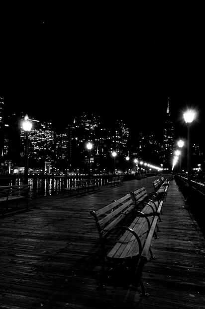 La primera foto es una noche de San Francisco de muelle 7. Si haces una búsqueda del muelle 7 en google, encontrará muchas fotos mostrando el horizonte y el muelle. Algunas de estas fotos pueden aparecer desordenadas especialmente por la noche con todos los colores y la luz del edificio. Sin embargo, quería tomar una foto que mostraba más del muelle. Subexponiendo y conversión a blanco y negro, el horizonte lejano se desvanece en el fondo, pero la luz de las luces del primer plano hasta los detalles del muelle. Puede ver las tablas en el muelle y las losas de la madera usada en los bancos. El sin el horizonte como una distracción, fácilmente podemos ver las principales líneas creadas por las luces.