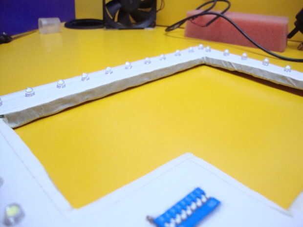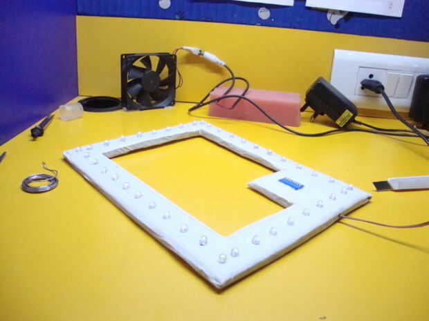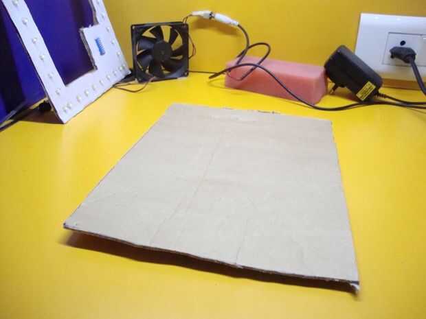 Para evitar las conexiones de aflojarse o rotura, es necesario añadir una cubierta posterior para el panel de luz. Para ello, cortar un trozo de cartón con el tamaño igual a la del panel. Pegarlo en el panel y corte la porción restante de cartón. Utilizar alguna cinta de papel para suavizar los bordes.