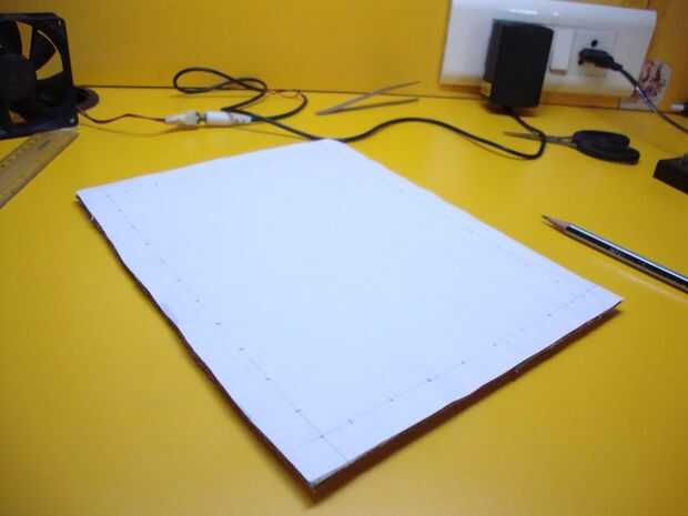 Para ello, deje una separación de 1,5 cm y empezar a marcar la posición de cada led con una separación de 2cm a lo largo. Por la amplitud, deje un espacio de 2,5 cm y marca el LED con una separación de 2cm. Las marcas deben ser alrededor de 1.5cm lejos de la frontera.
