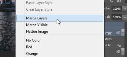 Crear una nueva capa pulsando MAYÚS + CTRL + clic. Luego, hacer combinar la capa recién creada y la capa de duplicado con CTRL + E o, haga clic derecho en la capa y seleccione mezcla capa.