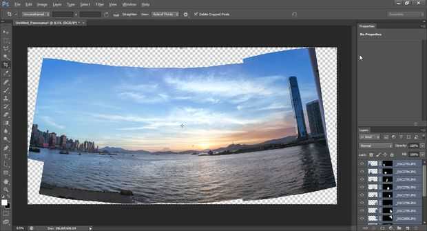 2. se han separado trozos de panorama en diferentes esquinas de la lona, en la que Photoshop no es lo suficientemente listo como para mezcla y coser tus fotografías.