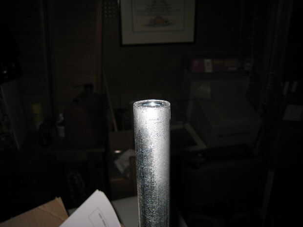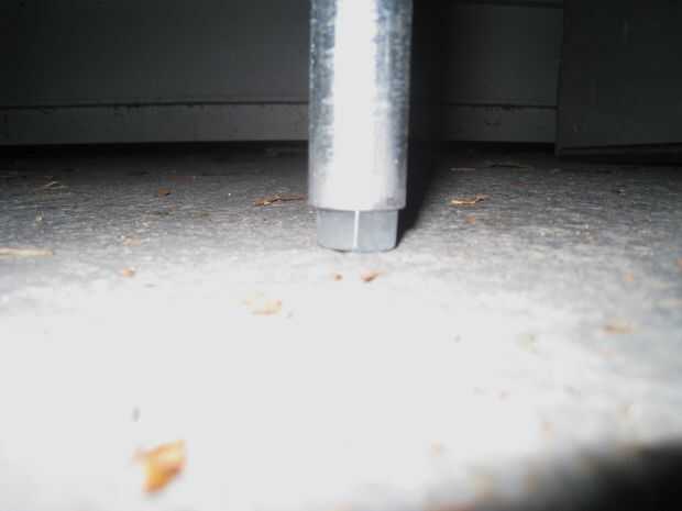 Coloque la tuerca en una superficie dura, concreto y asfalto son buenas opciones. Presione el extremo sin cortar del conducto sobre la tuerca, y debe quedar. Ahora Levante duro en la tuerca, forzando en el conducto el conducto y bang, seguir golpeando hasta que la tuerca de ras con el extremo de la tubería portacables. Esto hará que las roscas estén cuadradas para el conducto.