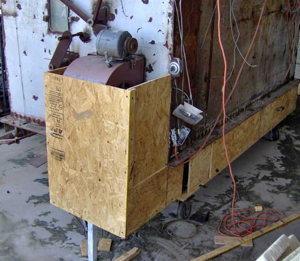 Las fotos son de mi mejora de tienda verde de la industria de la ráfaga-caja. Estoy usando un viejo ventilador de aire acondicionado central para crear una ráfaga de aire vaivén que capturar y contener y reciclar la arena de voladura.