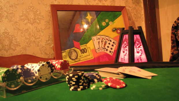 Foto 3-un ejemplo de la atención de los espectadores el enfoque rango distante se dibuja a la pintura en el fondo lo que está en foco (sí, la bandeja de fichas de póker también viene en foco ya que no es gama media tanto como quisiera el espacio es limitado)