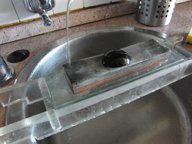 Usar placa/muela abrasiva del diamante fino. Practica primero en un diámetro más pequeño y finalmente en la mitad, para conseguir la esfera de mayor diámetro. Corregir bordes afilados en agua fina piedra de moler a mano,,, largo suave pulido...