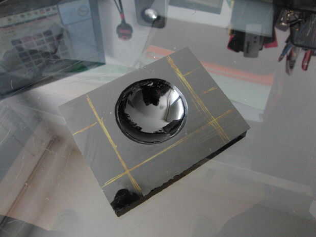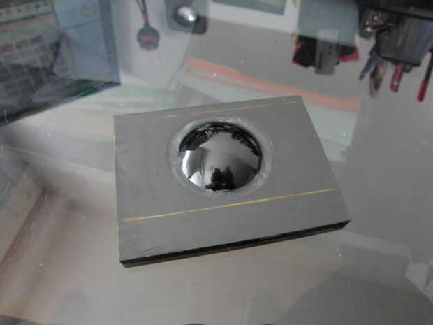 Puse la esfera en un plexi y esto pega con pegamento de epoxi... para hacer una cubierta negra sobre mi viejo submarino Marine Sunpack 32 flash.