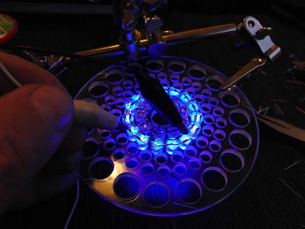 Por lo tanto, UV fotos... problema bien es una luz LED débil y por lo tanto largas exposiciones...Necesitaba una fuerte fuente de luz UV... especialmente para uso subacuático...Todo que potencia de mi led se calcula en 3, 6V x 2A... 7,2 Wat... disipa