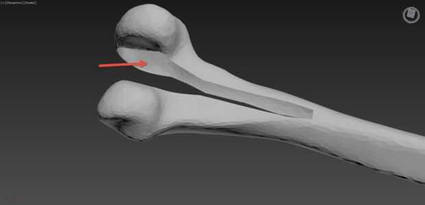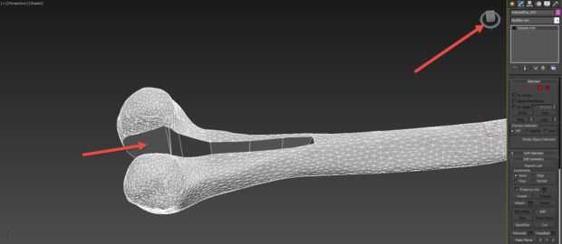 - Vamos a seleccionar la mitad posterior de nuestro fémur y luego mueva los verticies un poco para asegurarse de que nuestra hoja caben dentro de la hoja