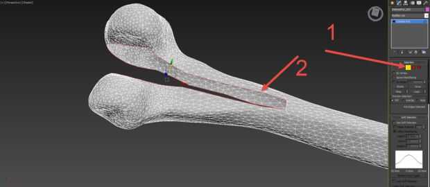 - Bien vamos a seleccionar nuestro fémur y entrar en modo de objeto vértice