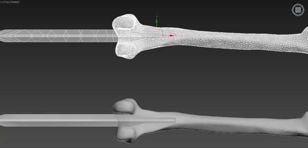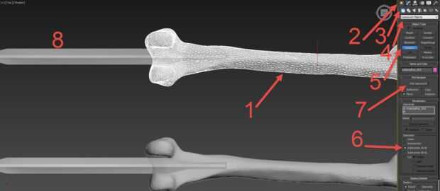 - Potagia copppieess... Hemos duplicado el hueso y la cuchilla, pero ¿para? Bien lo que es mejor tener una copia de seguridad al realizar el siguiente paso, que es booleano, entonces primero selecciona el hueso.