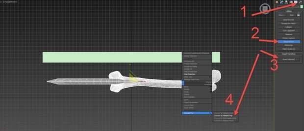 - Después nos va convertir en un editable poly para colapsar la pila de modificadores.