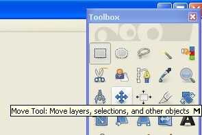 Seleccione la herramienta "Mover" en el cuadro de herramientas. Ahora arrastre fotos GIMP uno por uno como capas, en el orden en que se les capturaron.