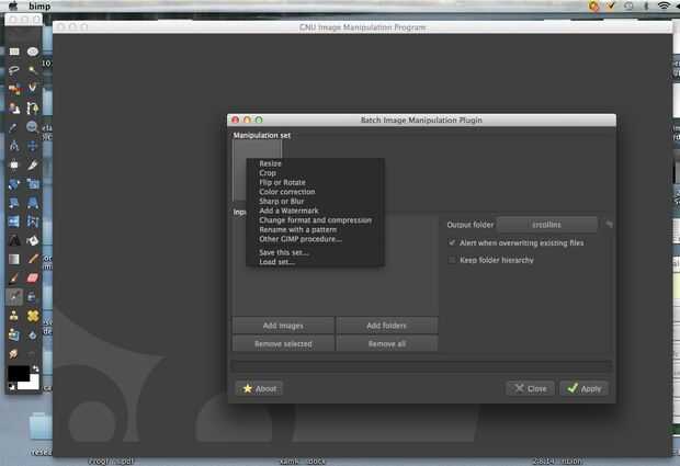 - GIMP. libre de código abierto y de gran alcance. Y mencioné que es gratis! Las versiones recientes tienen un plugin de procesamiento por lotes llamado BIMP que facilita bastante el procesamiento por lotes.
