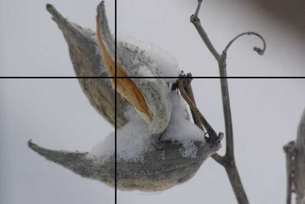 Hay una regla general en la fotografía de objetos colocados en los tercios de la foto marco (1/3 y 2/3, o.33 y.66) le dan una foto más interesante que un tema colocado centro muerto. Lo que pocos saben es que la regla de los tercios en realidad proviene de la "proporción áurea". La proporción áurea se encuentra en todas partes en la naturaleza (el espaciado vertical de las ramas en el tronco de un árbol de pino, la relación entre las válvulas de un