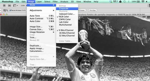 Ahora convierte la imagen en modo escala de grises ya que el color no es necesario para el procesamiento de la textura de la fotografía. Sólo necesitamos saber cómo oscuro/brillante.