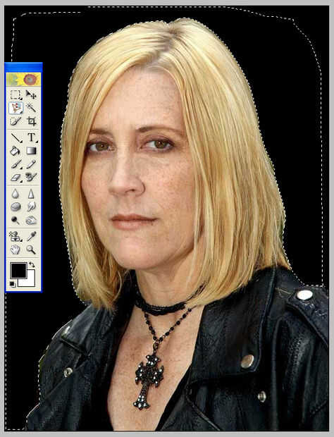 Usando el lazo o la herramienta lazo magnético corta el fondo de su víctima, a menos que de alguna manera tienes que posar en el cementerio. Ocultar las otras imágenes (haga clic en el icono de ojo en capas) tan sólo el fondo negro muestra a través de. Me había olvidado tomar una captura de pantalla para que la línea exterior está apagado.