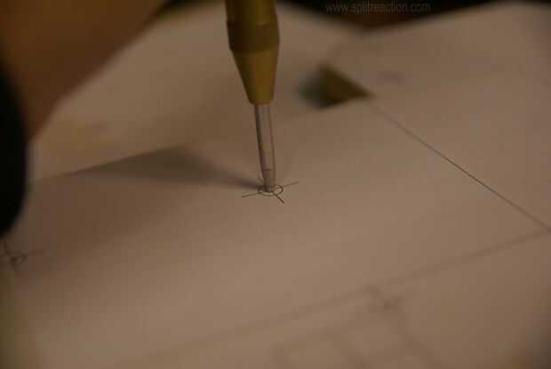 Estas marcas indican que necesita hacer. Usé una herramienta de punzón o un clavo para marcar las ubicaciones. el papel tiende rasgar para arriba así que usted puede perder.