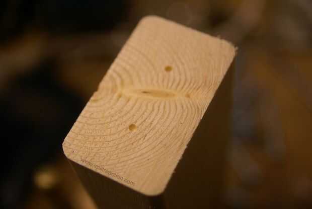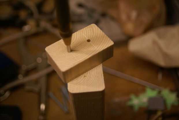 que utiliza una de las piezas de chatarra y un patrón con a sacador de centro los postes de madera.