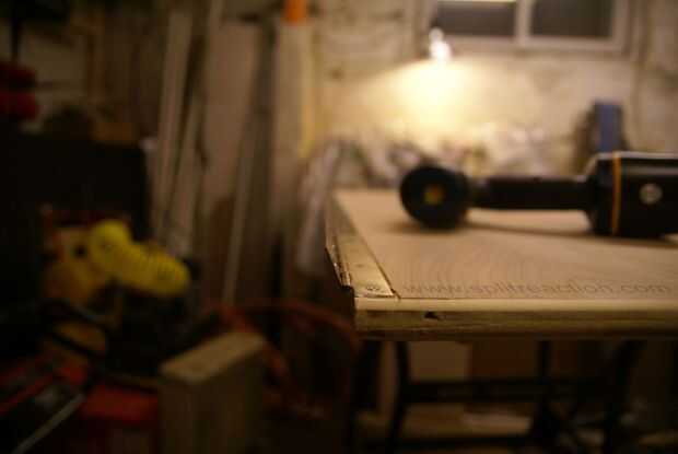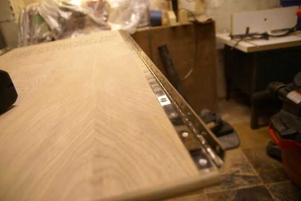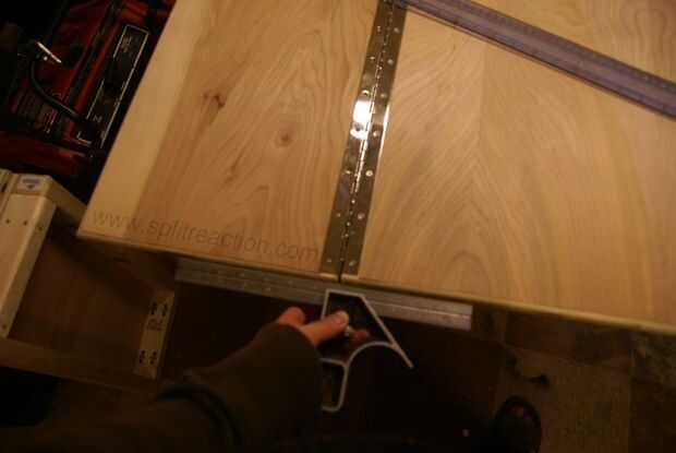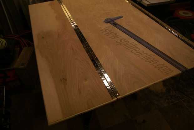 Estas son las bisagras para la mitad más grande. Son más difíciles porque son más grandes. Puede que necesite colocar todo el material en el piso para hacer esto. Mantenga una regla útil para asegurarse de que todo es derecho antes de que usted fije.