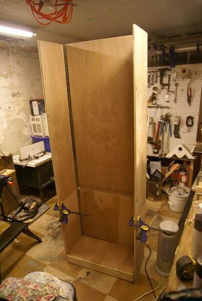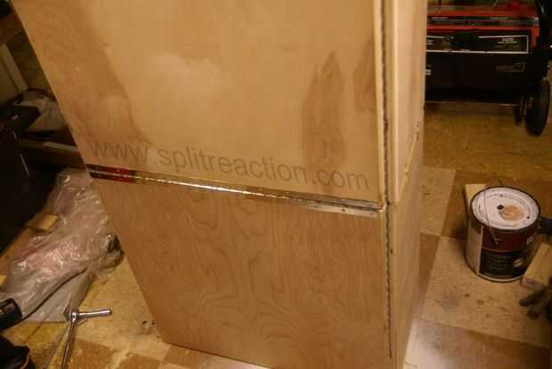 Las dos mitades entonces necesitan estar conectado con la otra bisagra. La única manera de hacerlo es poniendo las dos mitades en el piso. Había probado un poco por seguro las aletas con algunas abrazaderas. no es muy estable con pinzas sólo sosteniéndolo así que aproveché todo bastante rápido.