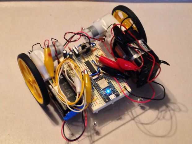 Para realizar este paso lo menos doloroso posible, simplemente usé cinta para unir los componentes electrónicos a mi robot. Funciona sorprendentemente bien (cuando en cantidades lo suficientemente grandes) y es fácilmente sustituible.