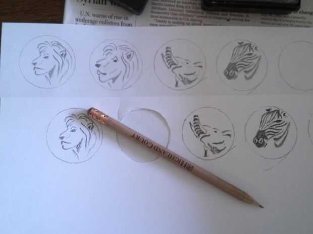 3. basado en la imagen que he buscado hasta en línea o la imagen mental, dibujar esa imagen en los círculos que creaste en la página en el paso 1. Tratar de mantenerlos lejos del borde del círculo para que cuando estás tallando el borde del corcho no se rompa. Usted debe obtener un resultado similar a la imagen de arriba.