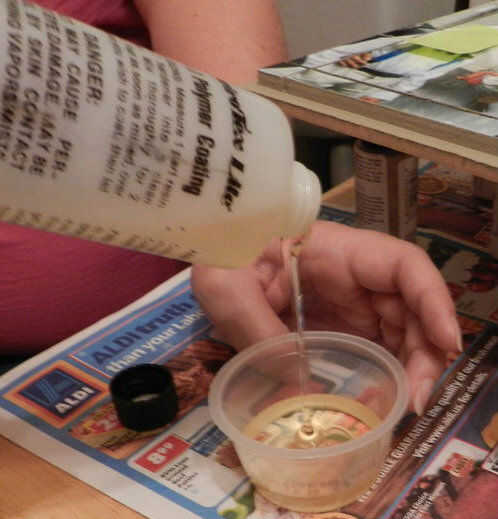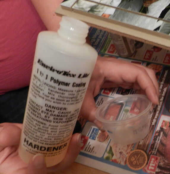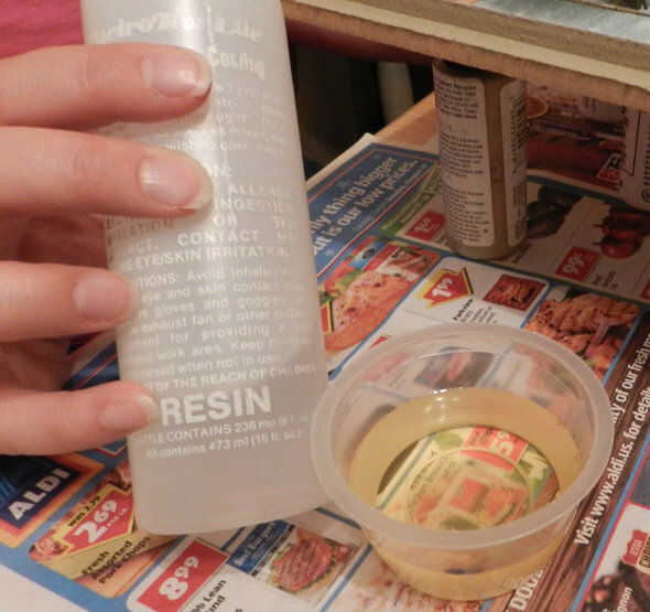 1. dentro de la caja "pour-on" son dos botellas: estos se mezclan en partes iguales la resina y el endurecedor.