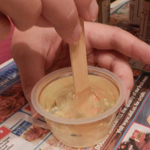 7. utiliza el palito para revolver mixure hasta que tenga el mismo color a lo largo (no hay remolinos).