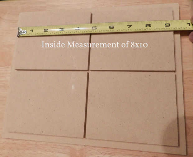 Esta tabla es necesaria para el proyecto, sin embargo, estas instrucciones no entran en detalles sobre "Cómo hacerlo" crear la Junta. He adjuntado un par de fotos de 8 x 10 medidas para ayudar a crear la Junta que se hace para caber en un tamaño normal, fuera del marco del estante (8 x 10, 5 x 7, 10 x 13, etc...).