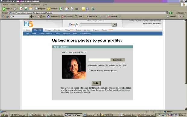 3 Ahora en la pagina de inicio, en la parte superior derecha hay una opcion donde dice subir fotos, ahi le das clic, cuando abra esta pagina, va a aparecer un rectangulo dice examinar.
